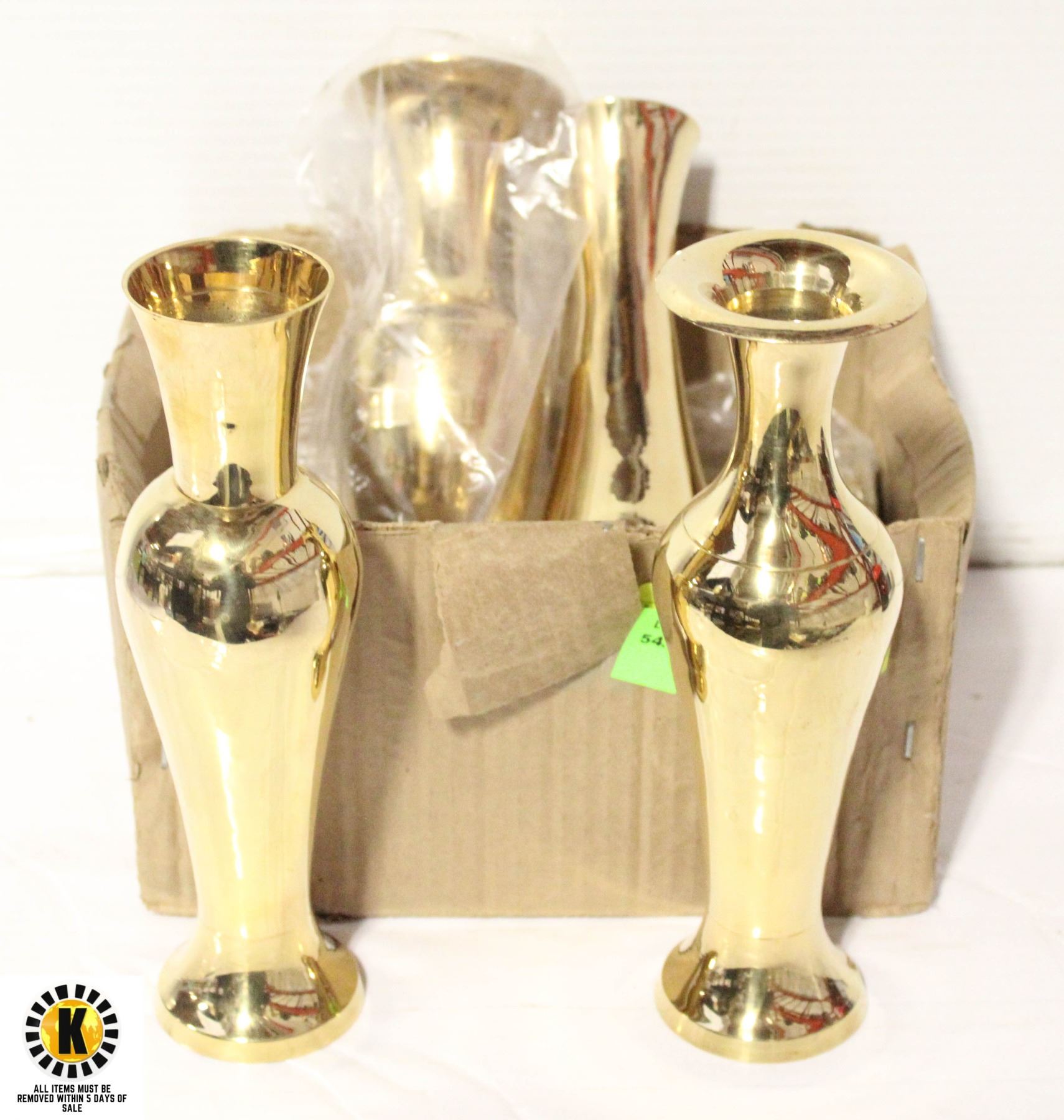 LOT OF 5 NEW ASSORTED SOLID BRASS VASES