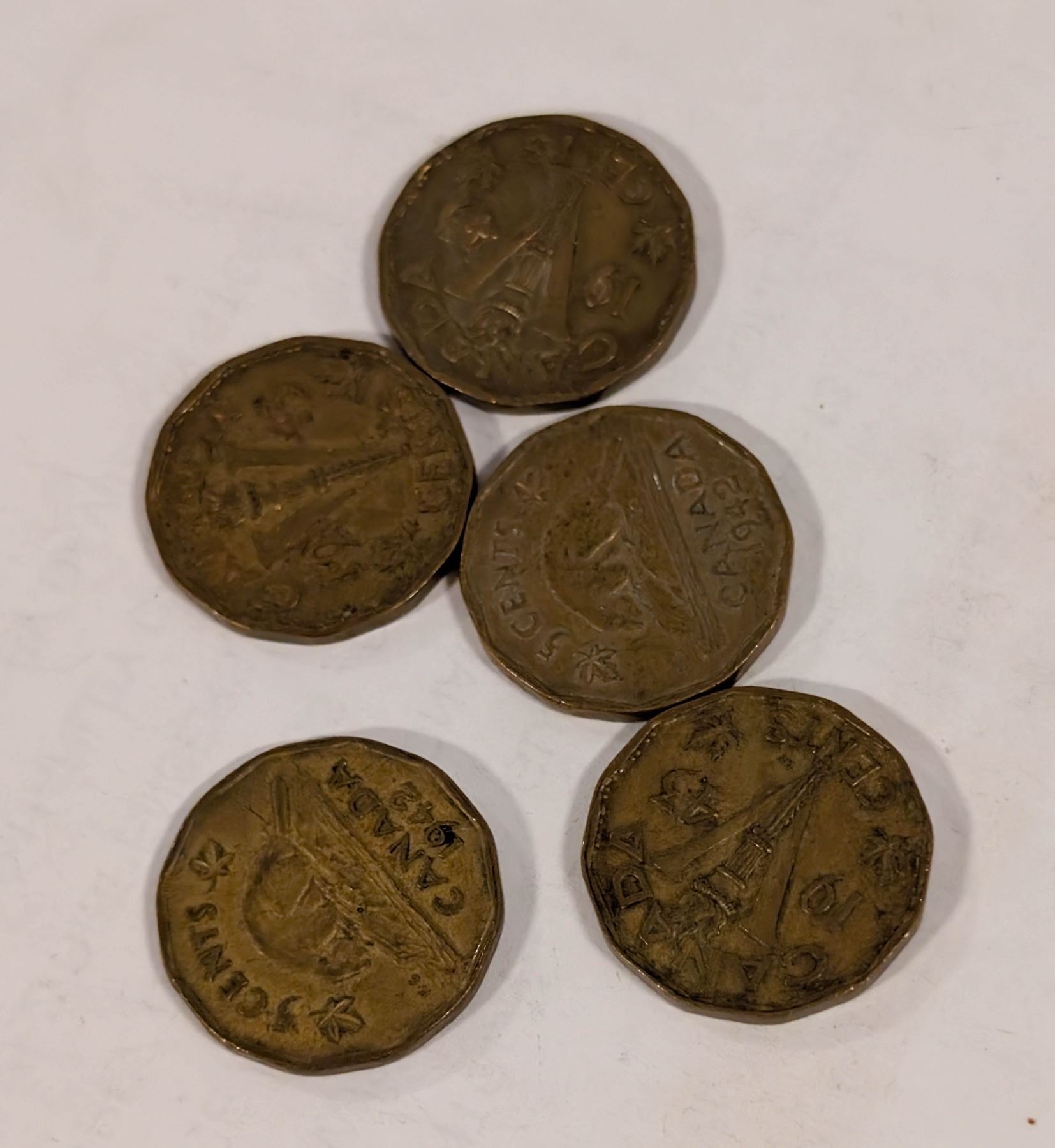 LOT OF 5 OLD WWII CANADA "TOMBAC" NICKELS