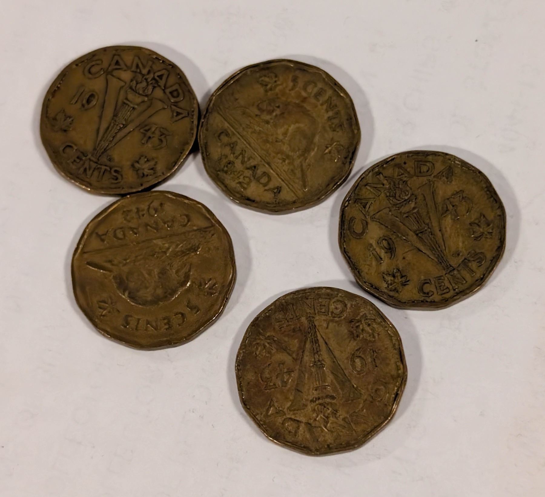 LOT OF 5 OLD WWII CANADA "TOMBAC" NICKELS