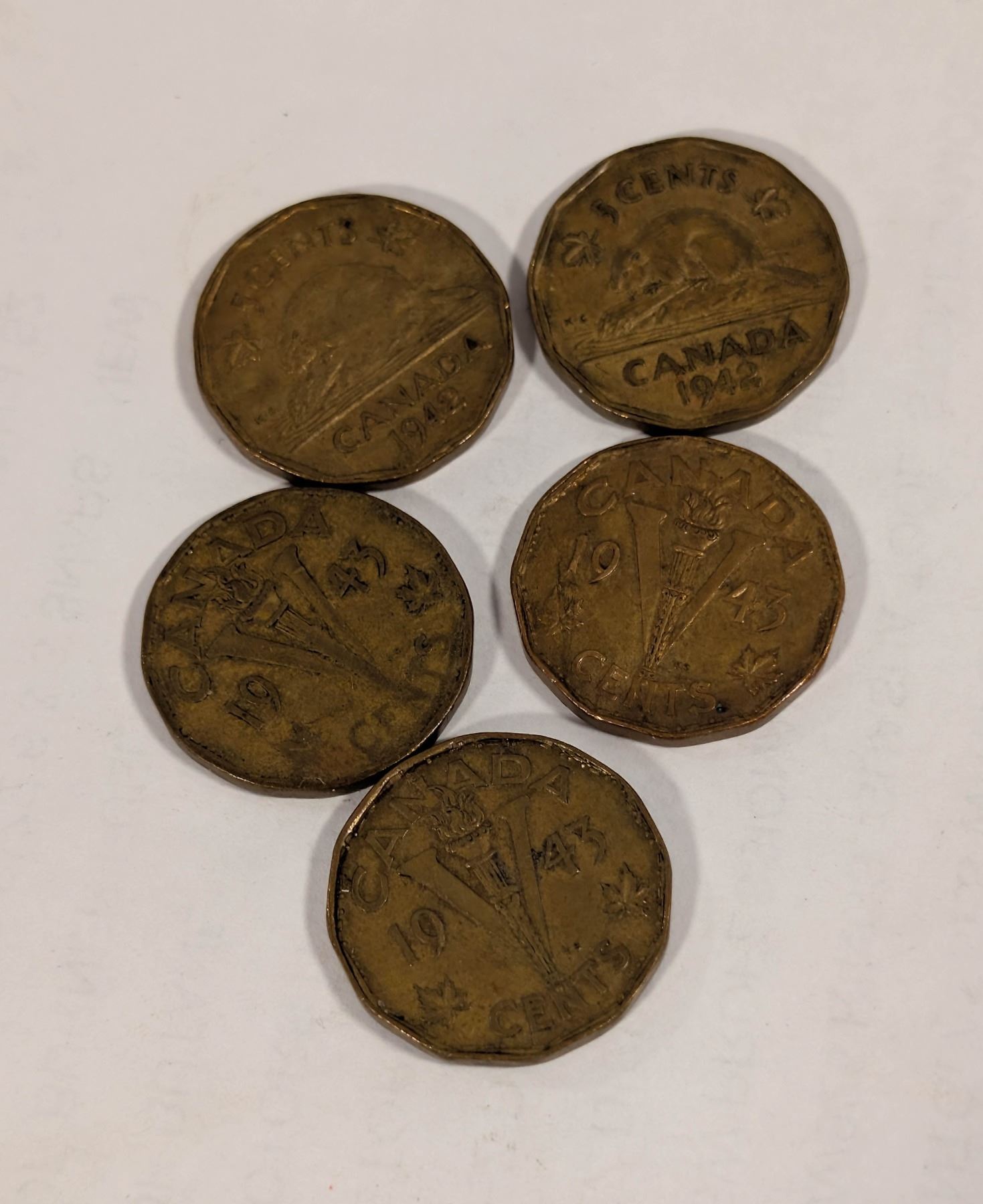 LOT OF 5 OLD WWII CANADA "TOMBAC" NICKELS