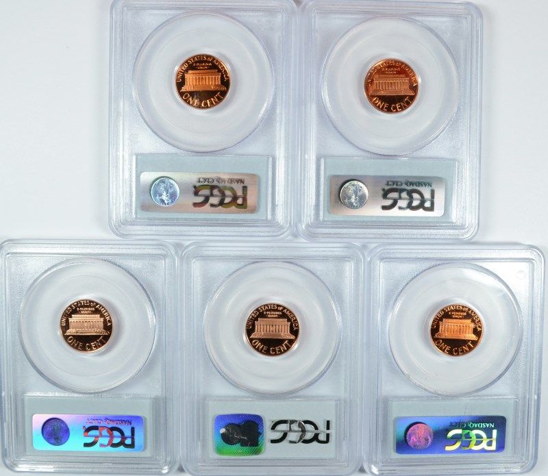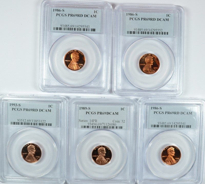 LOT OF (5) PCGS PR69 RD DCAM LINCOLN CENTS 3- 1986-S, 1993-S, 1989-S