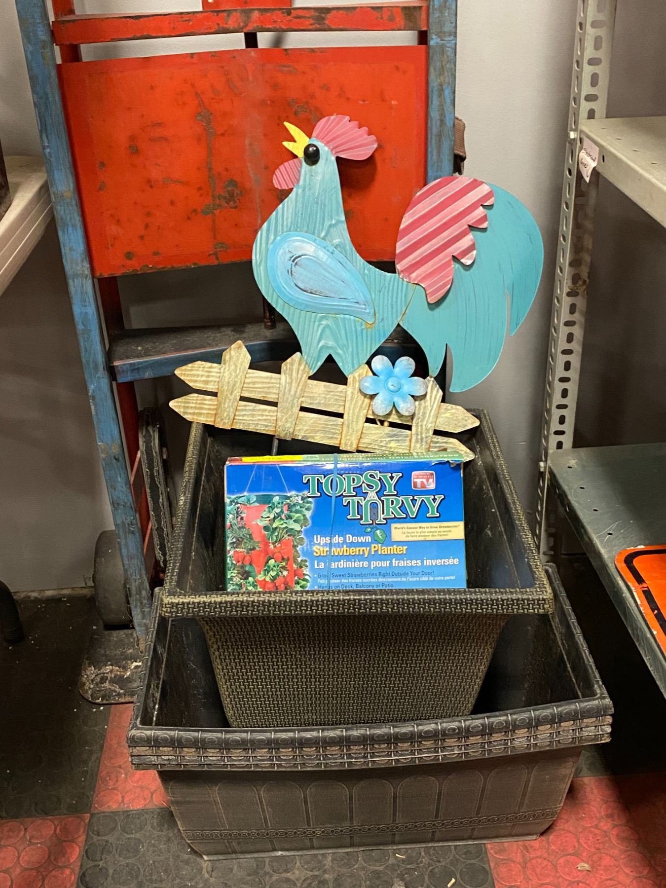 LOT OF 5 PLANTERS + ROOSTER GARDEN DECOR SIGN