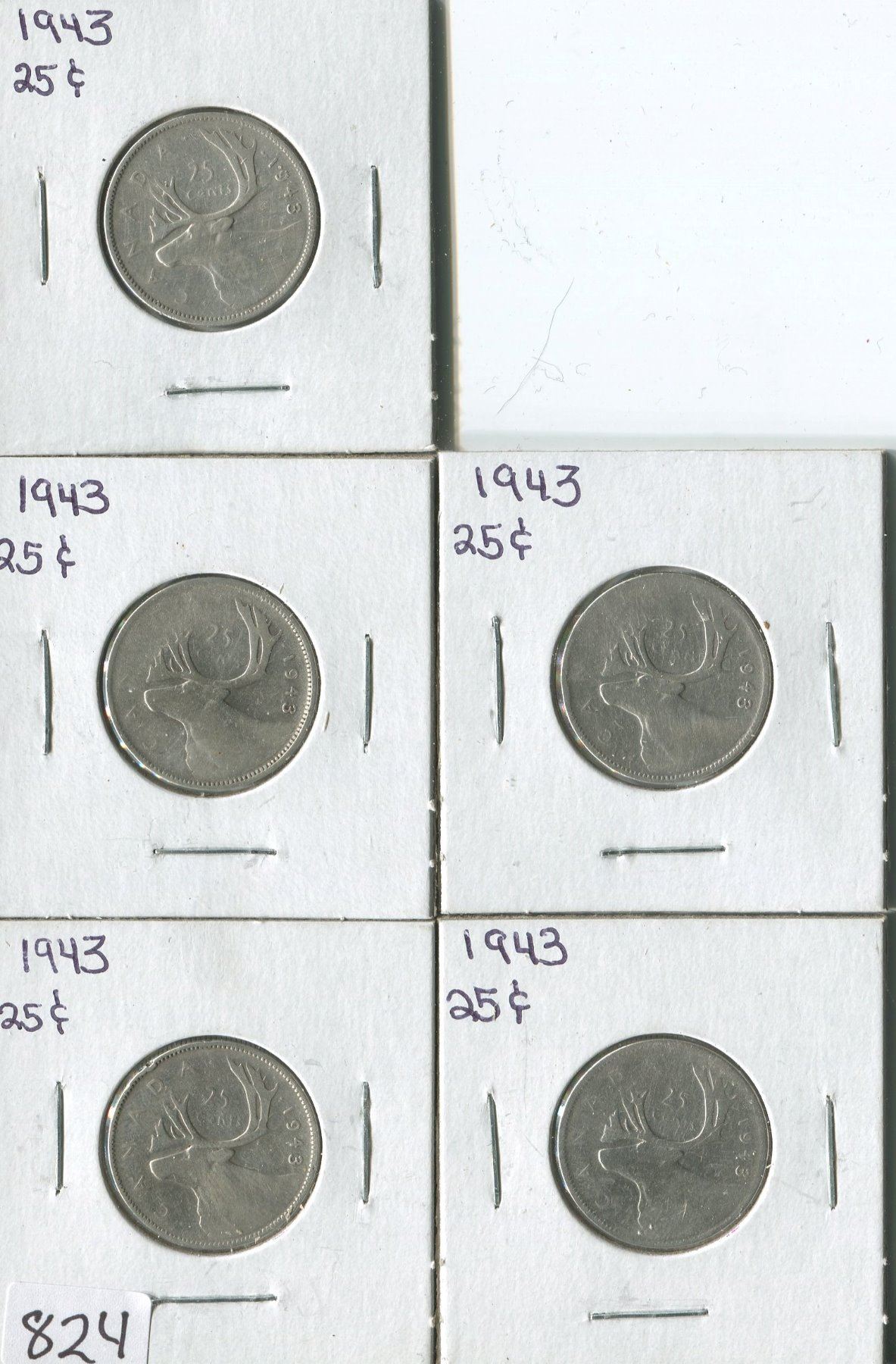 LOT OF 5 QUARTERS (CANADA) *1943*