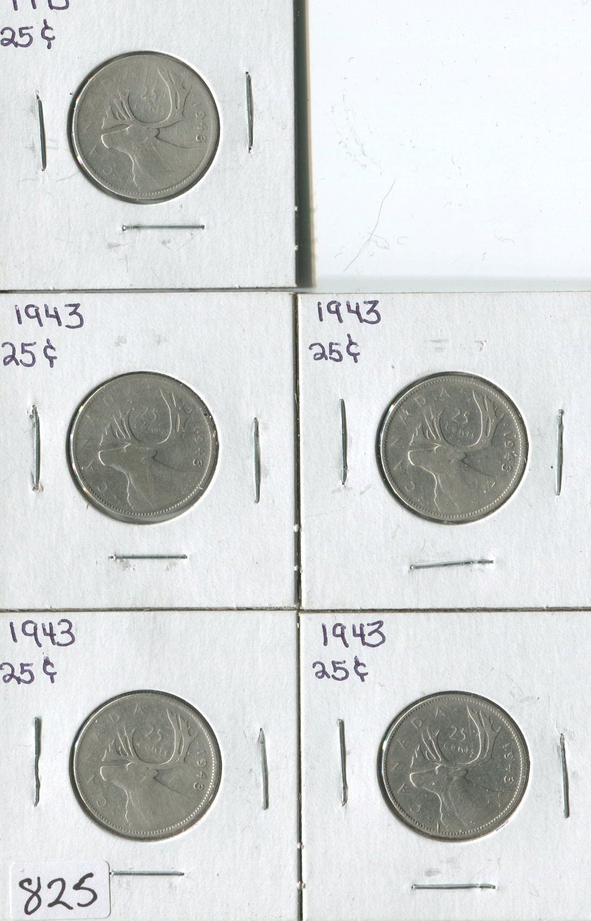LOT OF 5 QUARTERS (CANADA) *1943*