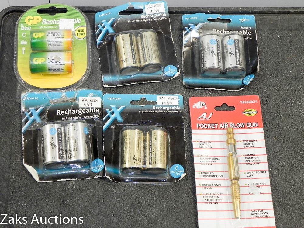 LOT OF 5 RECHARGEABLE BATTERIES AND 1 POCKET AIR BLOW GUN