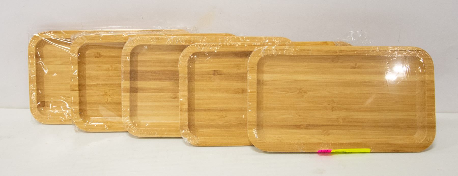 LOT OF 5 RECTANGULAR WOODEN TRAYS