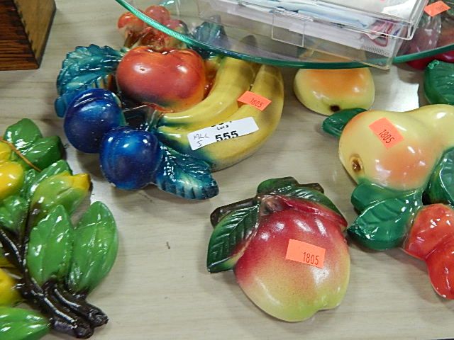 LOT OF 5 RETRO CREAMIC FRUIT HANGING ORNAMENTS