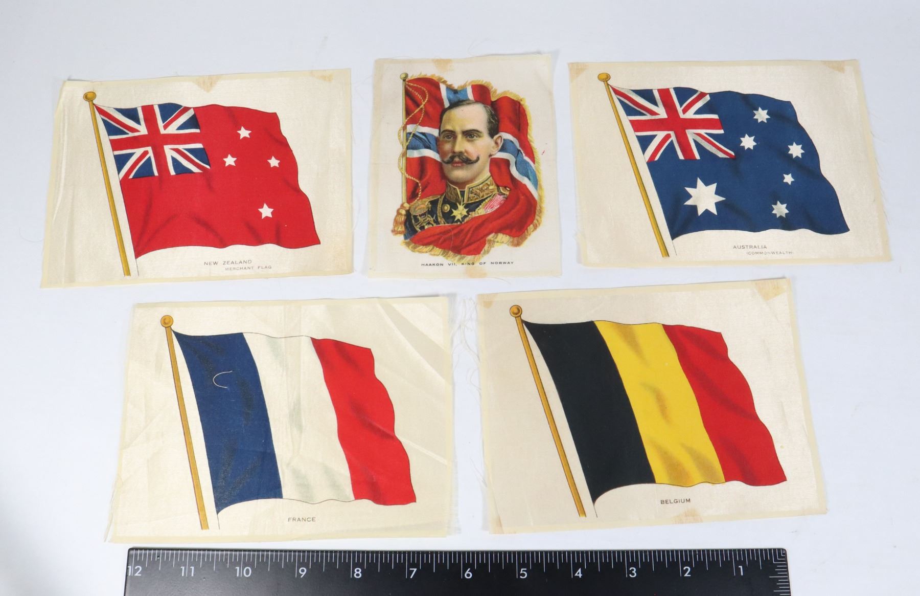 LOT OF 5 SILK CARDS ART ASSORTED COUNTRY FLAGS