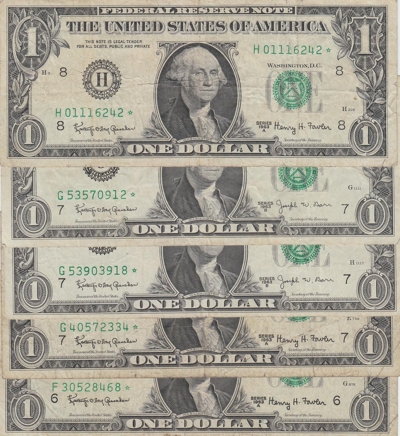 LOT OF 5 STAR NOTES $1 1963 FRN