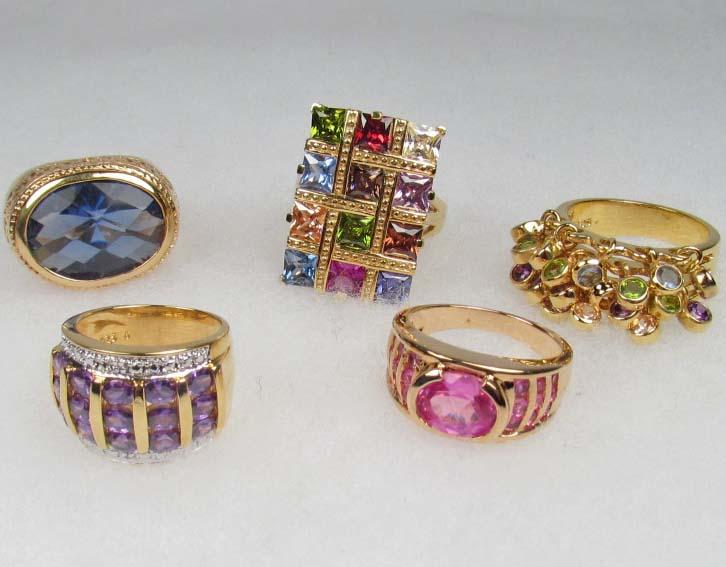 LOT OF 5 STERLING SILVER AND GEMSTONE ESTATE JEWELRY RINGS