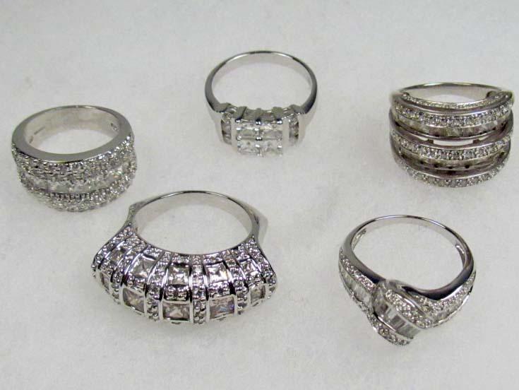 LOT OF 5 STERLING SILVER AND GEMSTONE ESTATE JEWELRY RINGS