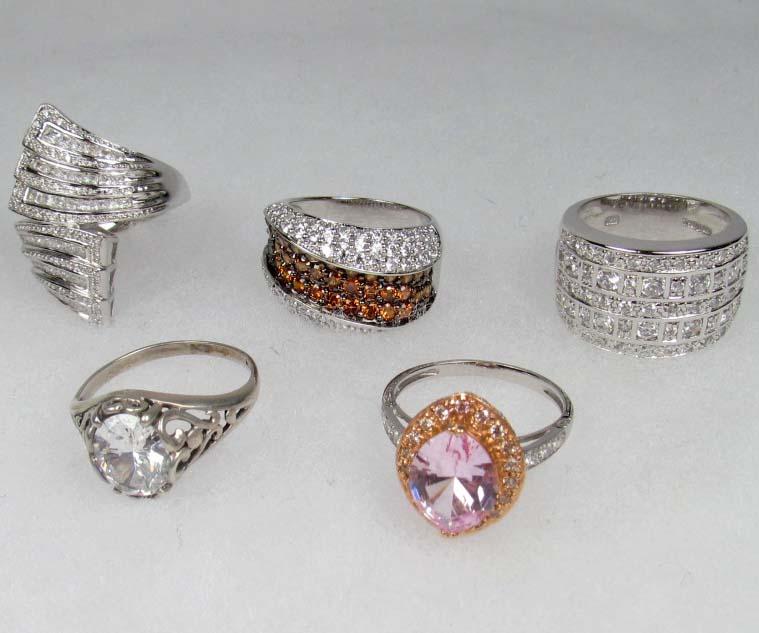 LOT OF 5 STERLING SILVER AND GEMSTONE ESTATE JEWELRY RINGS