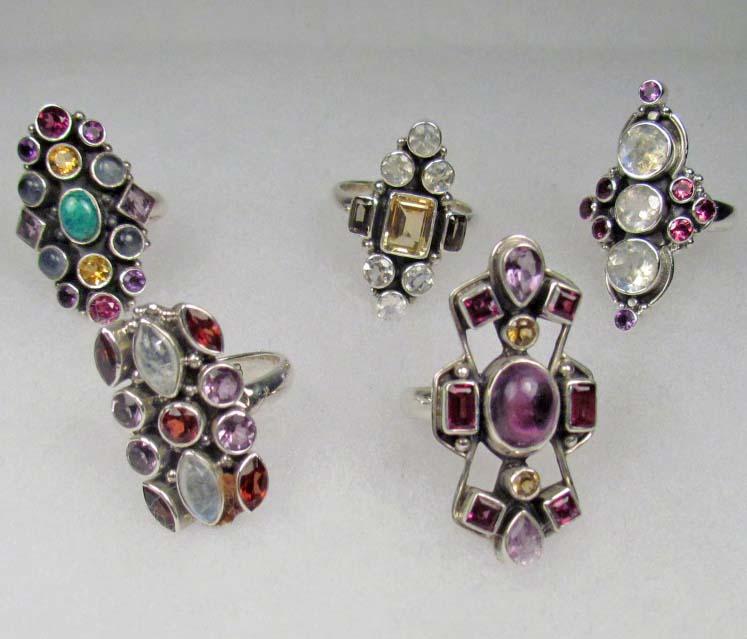LOT OF 5 STERLING SILVER AND GEMSTONE ESTATE JEWELRY RINGS