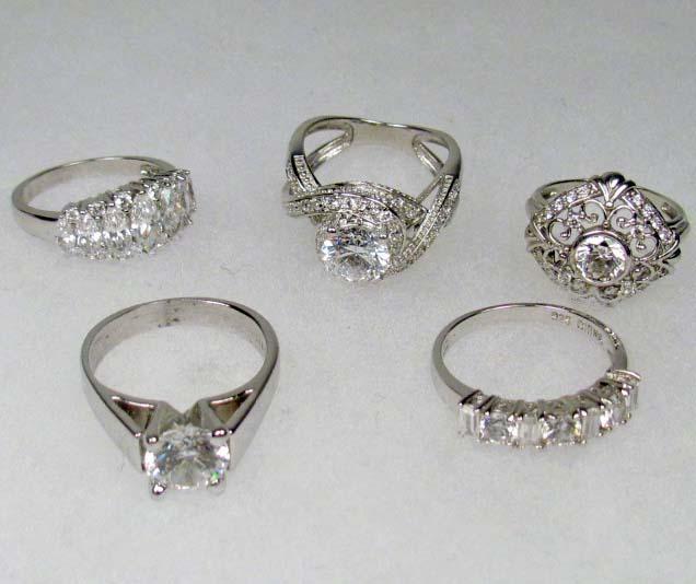 LOT OF 5 STERLING SILVER AND GEMSTONE ESTATE JEWELRY RINGS