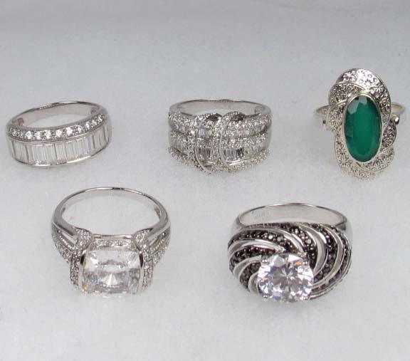 LOT OF 5 STERLING SILVER AND GEMSTONE ESTATE JEWELRY RINGS