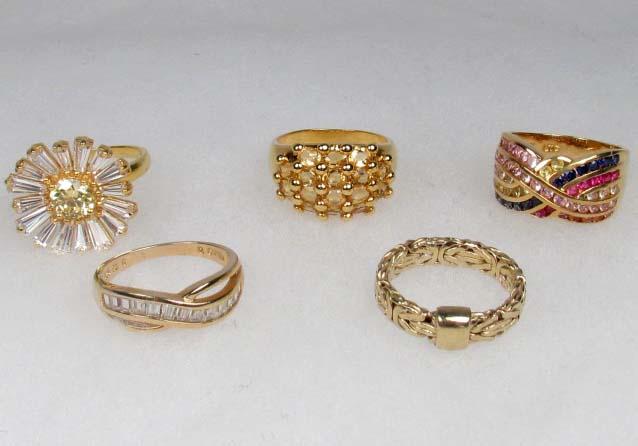 LOT OF 5 STERLING SILVER AND GEMSTONE ESTATE JEWELRY RINGS