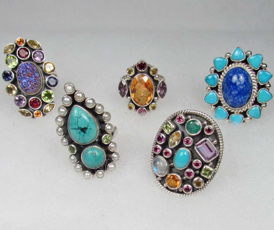 LOT OF 5 STERLING SILVER AND GEMSTONE ESTATE JEWELRY RINGS