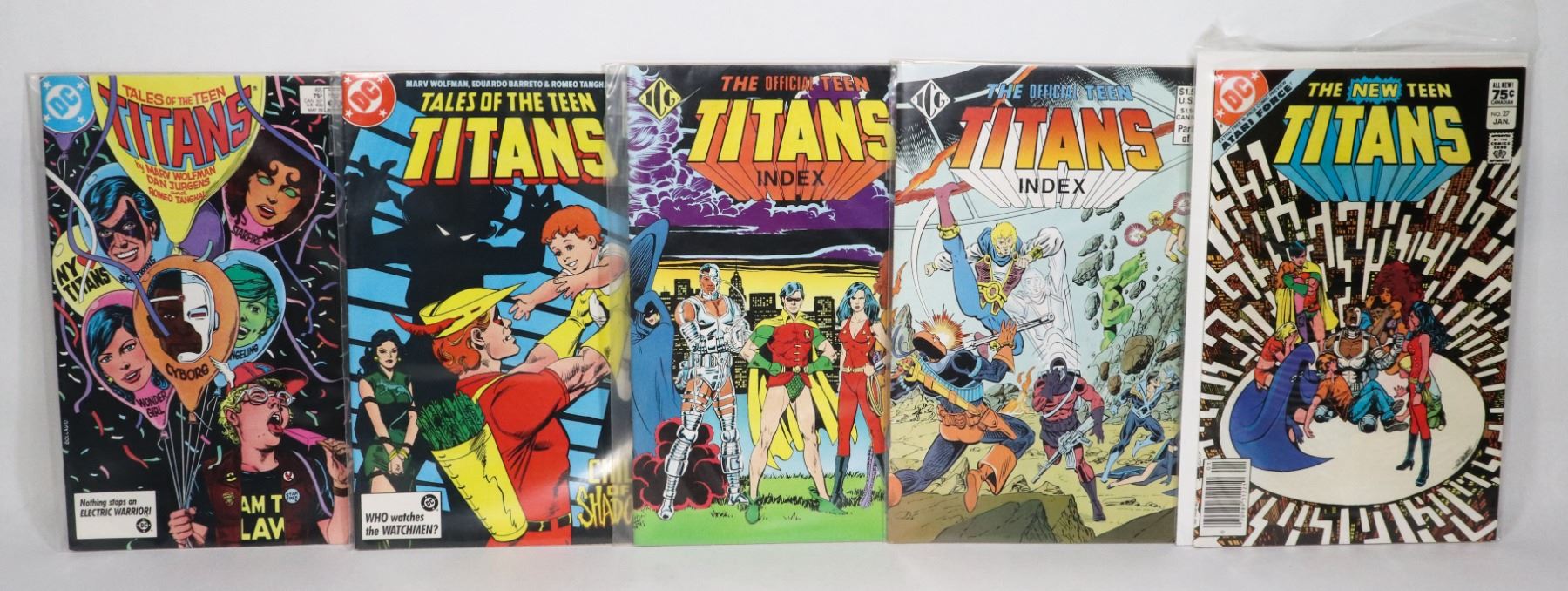THE NEW TEEN TITANS NO.27 TALES OF THE TEEN TITANS #65 TALES OF THE TEEN TITANS #80 THE OFFICIAL TEEN TITANS INDEX PART 3, 5***ITEM(S) LOCATED IN LETHBRIDGE ALBERTA. SMALL ITEMS ONLY ARE AVAILABLE FOR FREE TRANSPORT TO EDMONTON OFFICE (READ AUCTION DETAILS FOR MORE INFORMATION)