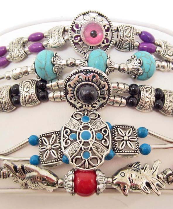 LOT OF 5 TIBETAN SILVER BRACELETS
