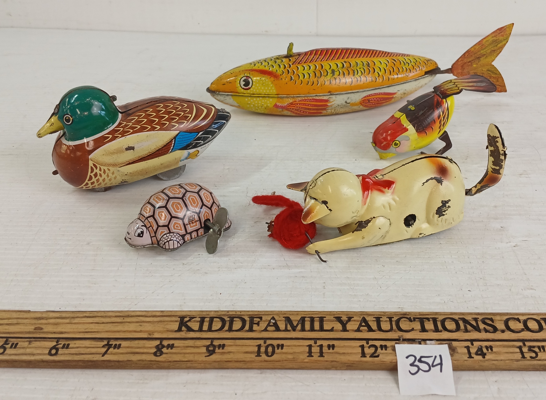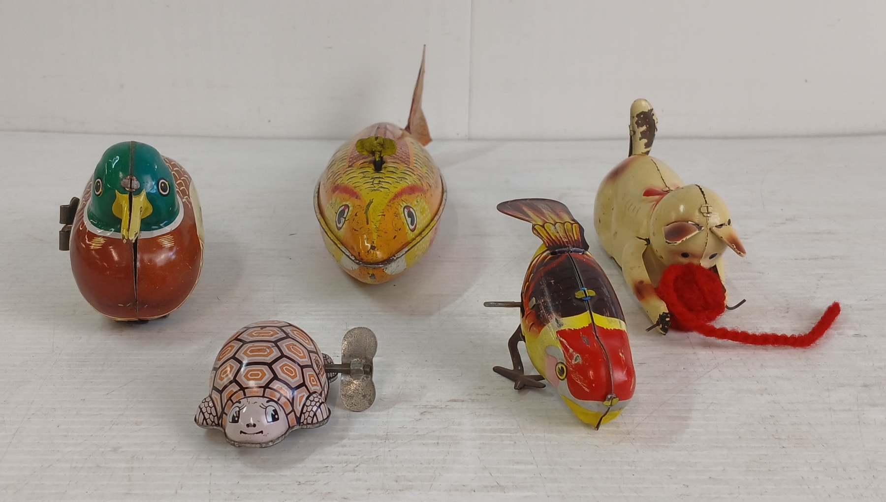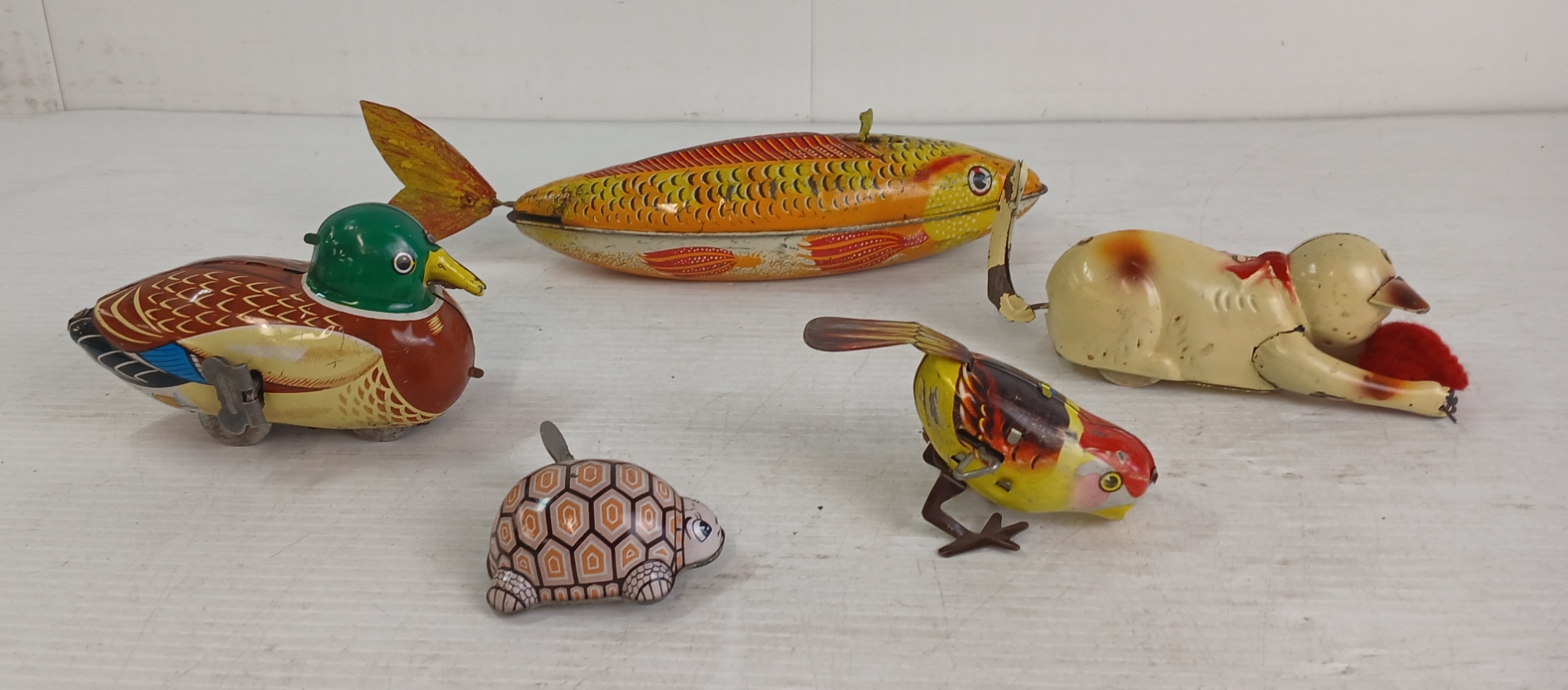 NOTE: MFG JAPAN & GRT BRIT - FISH & BIRD WORKING WHEN TESTED - TURTLE & DUCK NOT WORKING WHEN TESTED - CAT UNTESTED & NO KEY