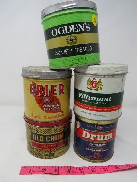 LOT OF 5 TOBACCO TINS (OGDENS BRIER, FILTROMAT, DRUM, OLD CHUM)