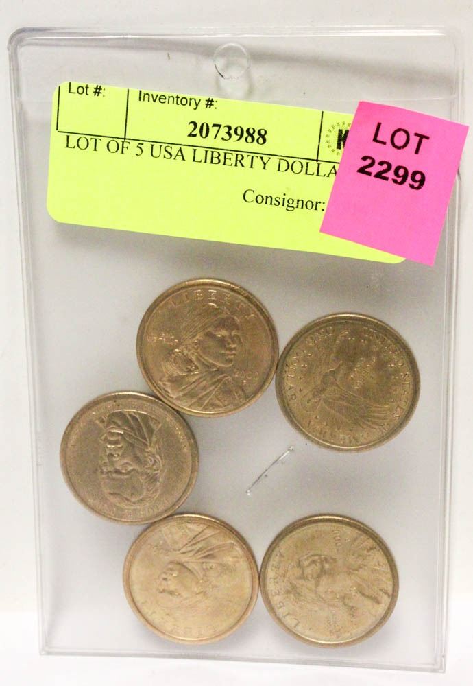 LOT OF 5 USA LIBERTY DOLLARS