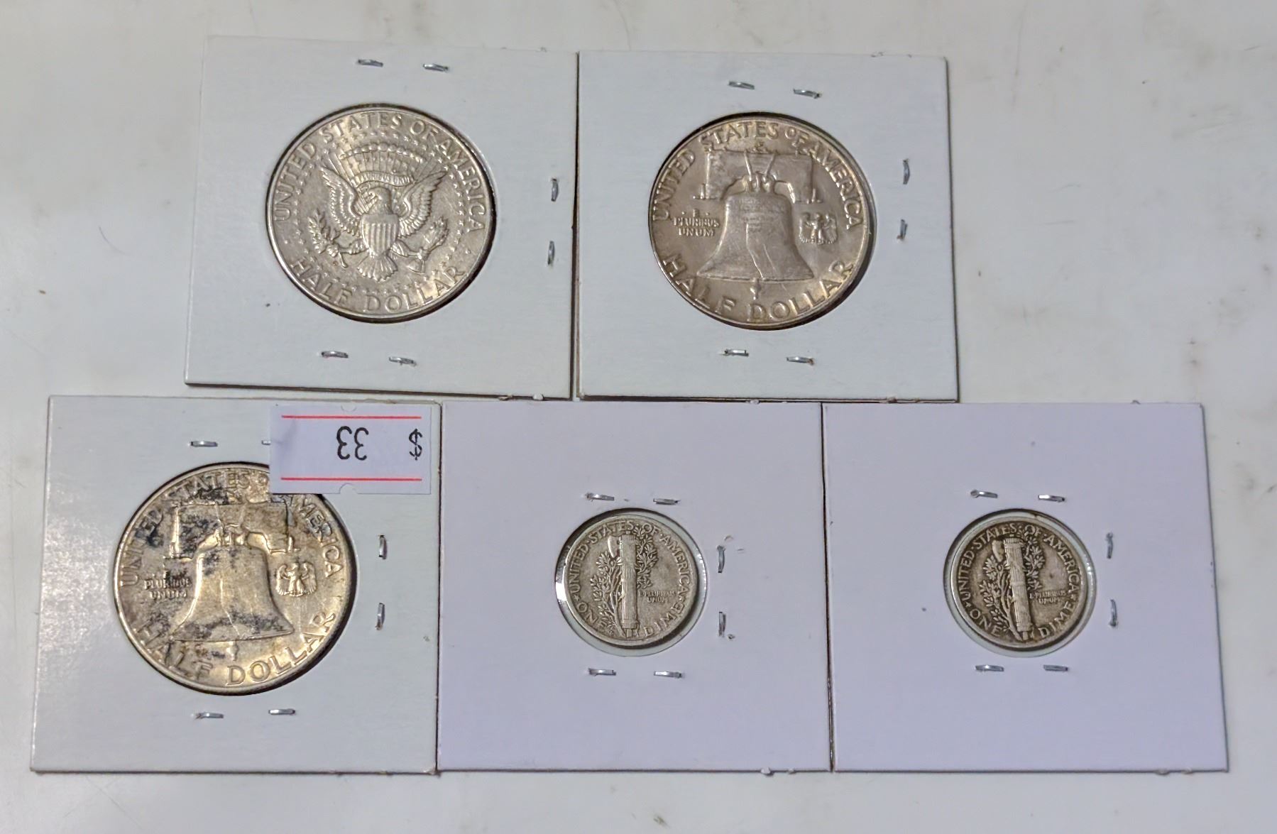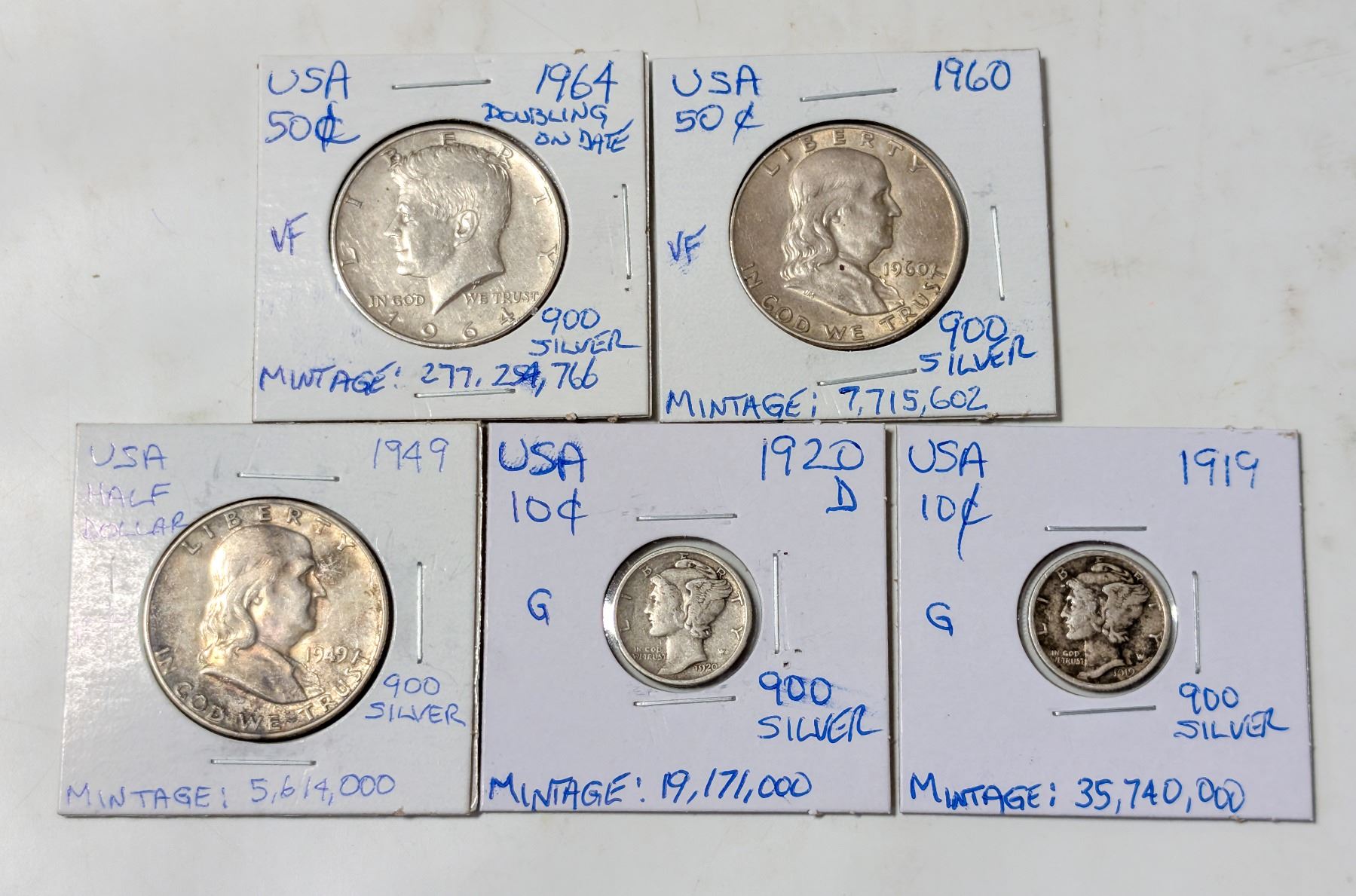 LOT OF 5 USA SILVER COINS 1919-1964