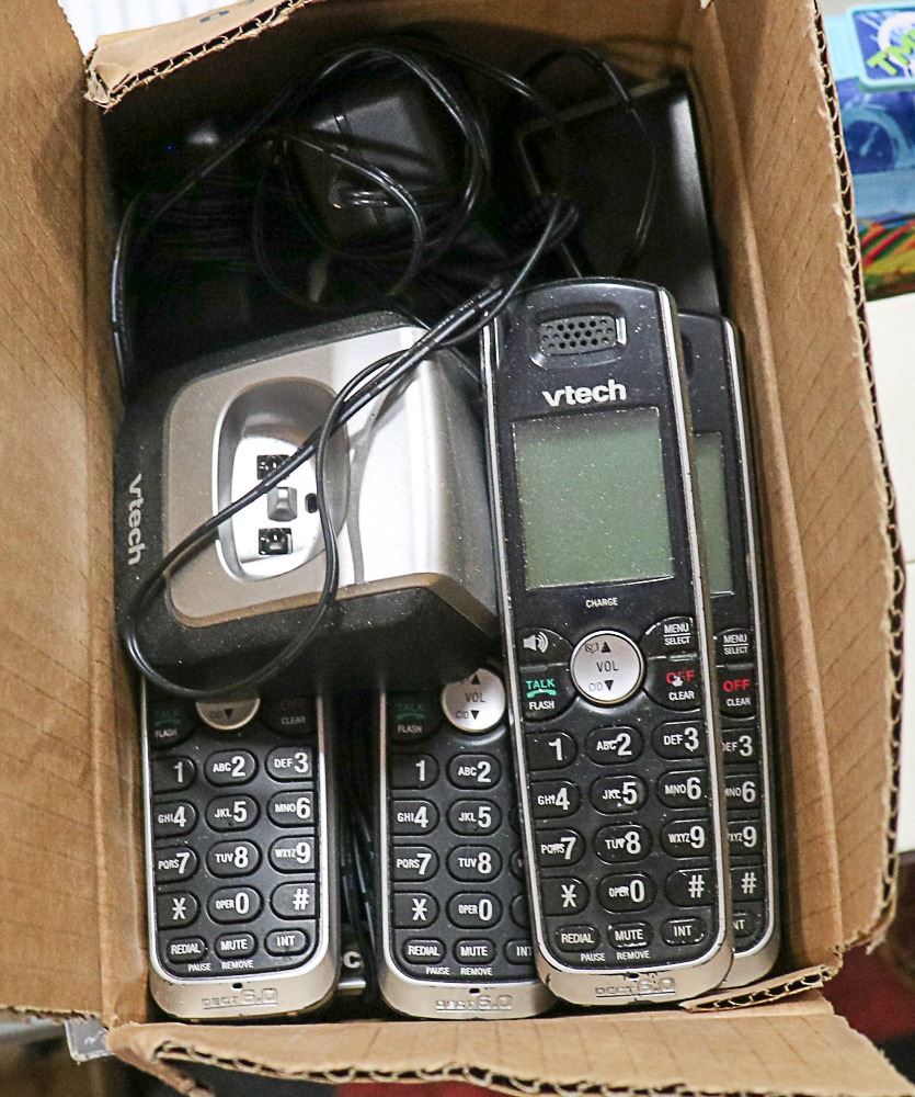 LOT OF 5 V-TECH PHONES W/ MAIN BASE & CHARGERS