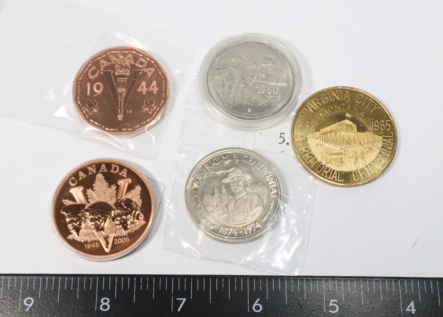 LOT OF 5 VARIOUS COMMEM. TOKENS AND MEDALS ETC.