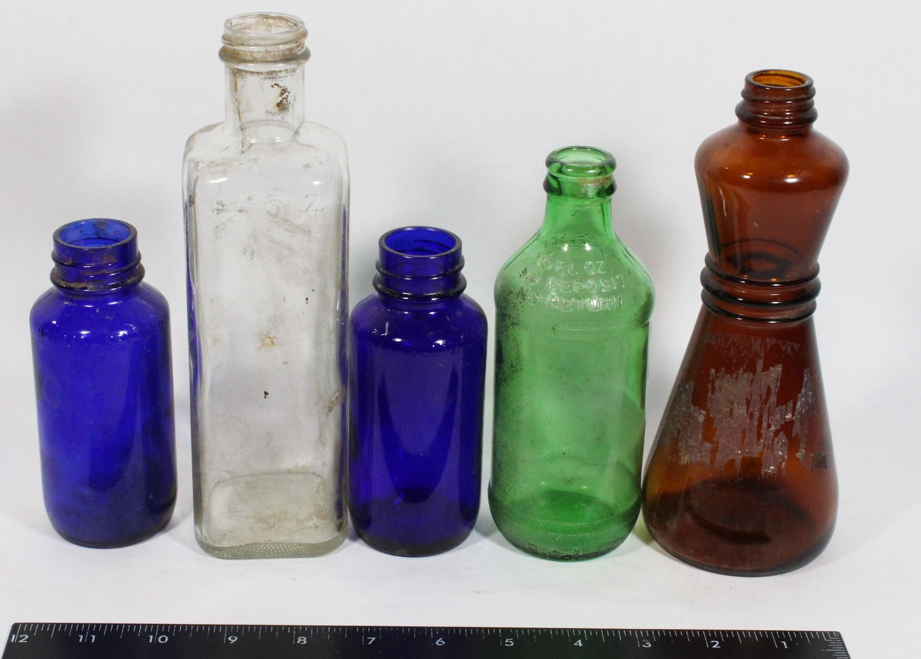 LOT OF 5 VINTAGE GLASS BOTTLES
