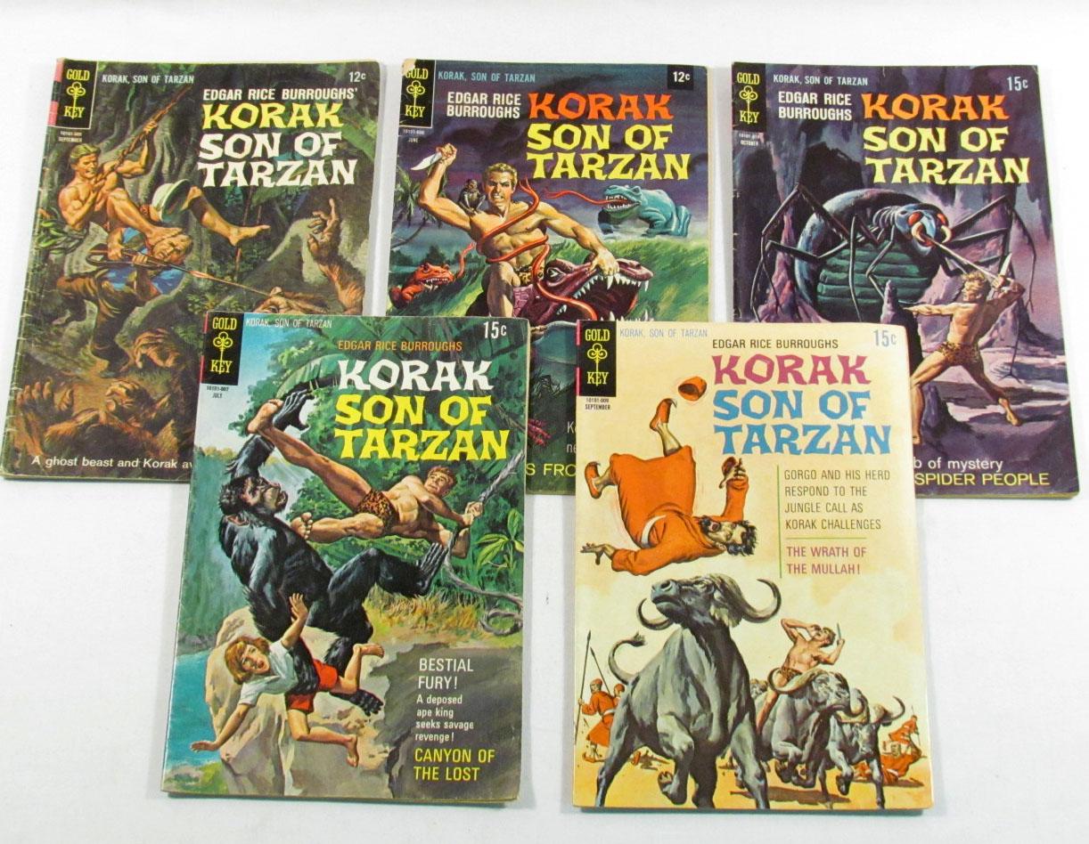 LOT OF 5 VINTAGE KORAK SON OF TARZAN COMIC BOOKS - 12 AND 15 CENT COVERS