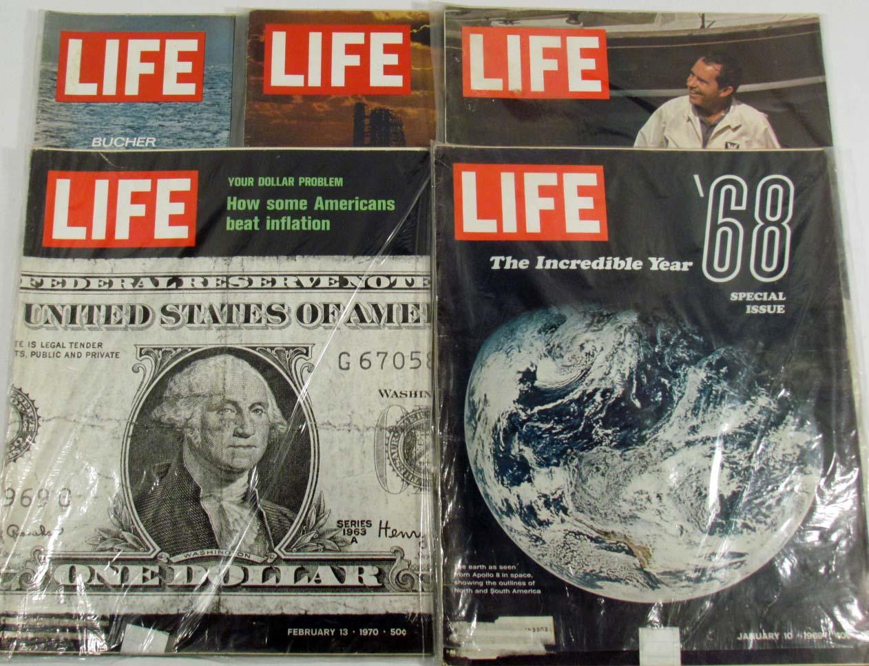 LOT OF 5 VINTAGE LIFE MAGAZINES - INCL. MOON LANDING