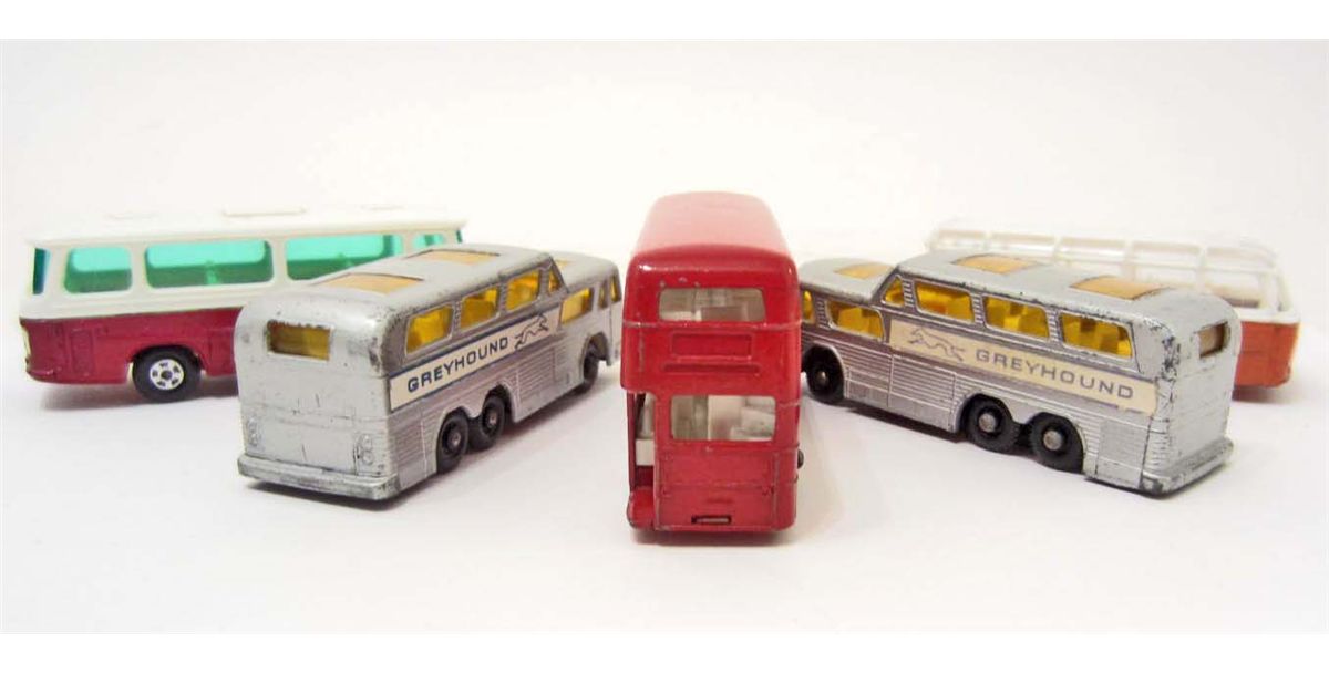 LOT OF 5 VINTAGE MATCHBOX TOY BUSES