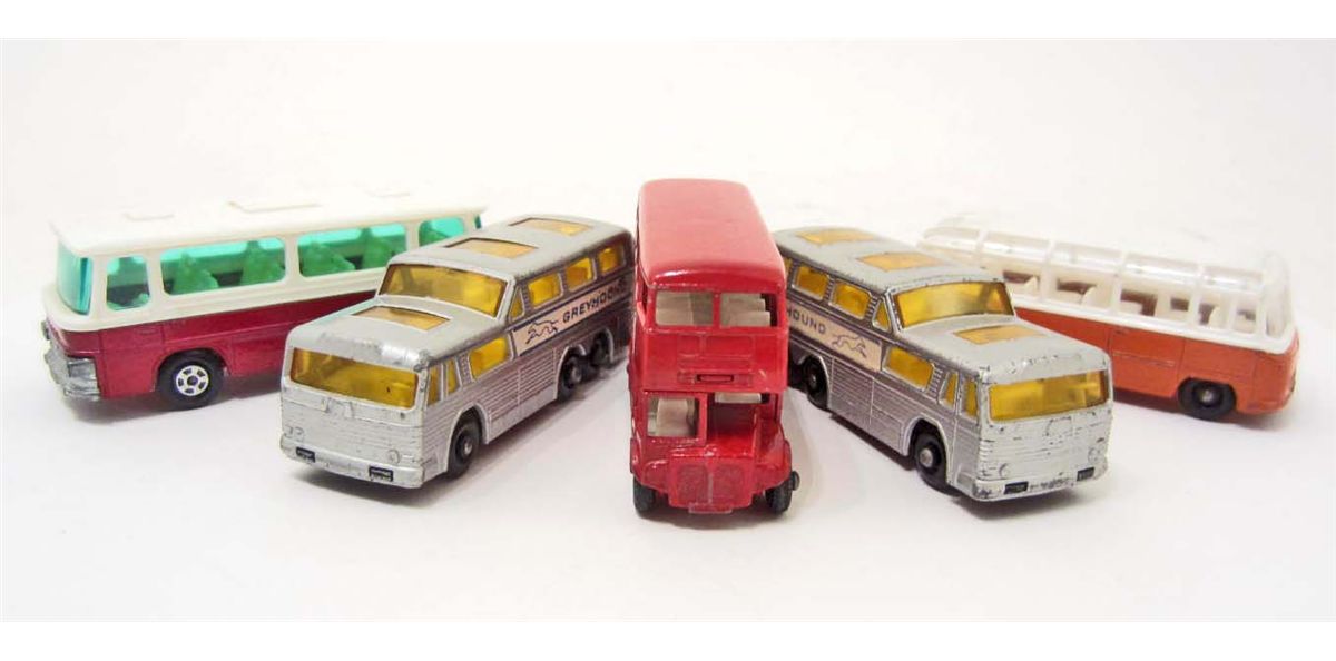 LOT OF 5 VINTAGE MATCHBOX TOY BUSES