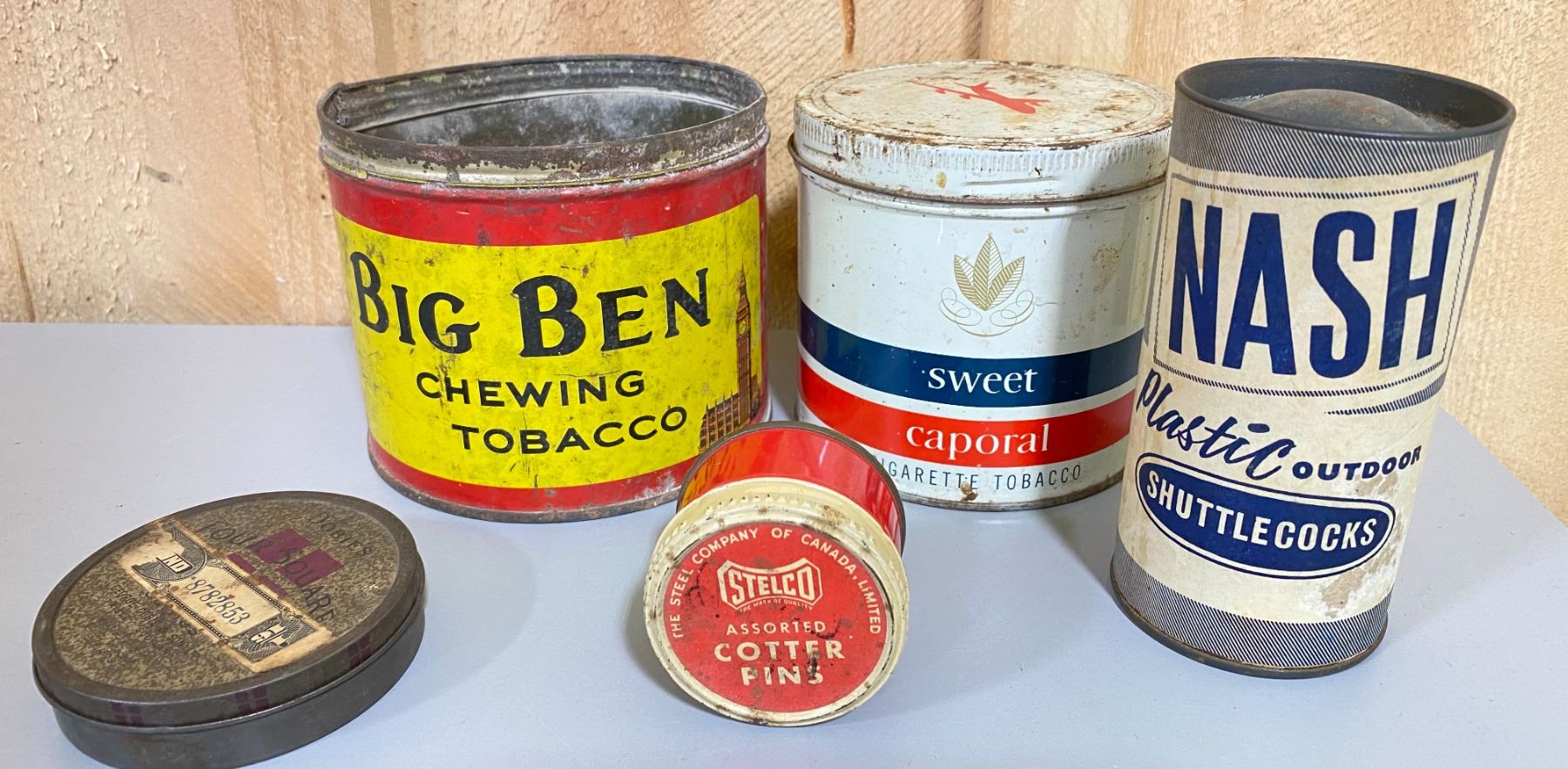 LOT OF 5 VINTAGE TINS INCLUDING STELCO COTTER PINS