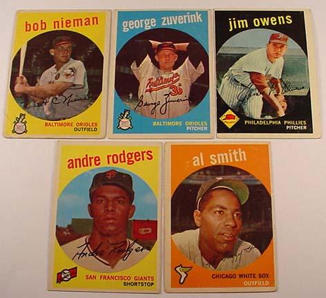 LOT OF 5 VINTAGE TOPPS BASEBALL CARDS - Incl. Al Smith, Andre Rodgers, Jim owens, George Zuverink and Bob Nieman