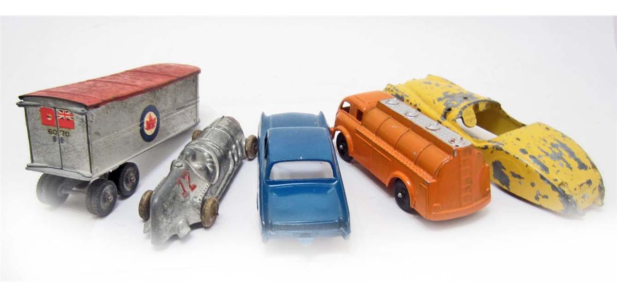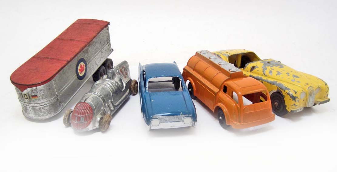 LOT OF 5 VINTAGE TOY VEHICLES - 3 ARE HUBLEY