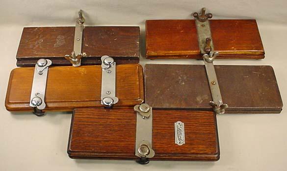 LOT OF 5 VINTAGE WOODEN TIE PRESSES