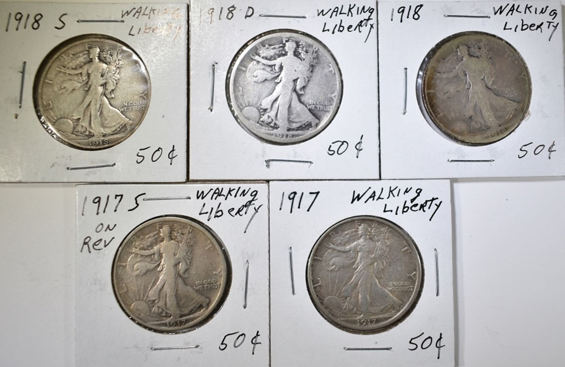 1917 VF, 1917-S REV FINE, 1918 GOOD, 1918-D GOOD & 1918-S FINE. ESTIMATE $90 - $110.