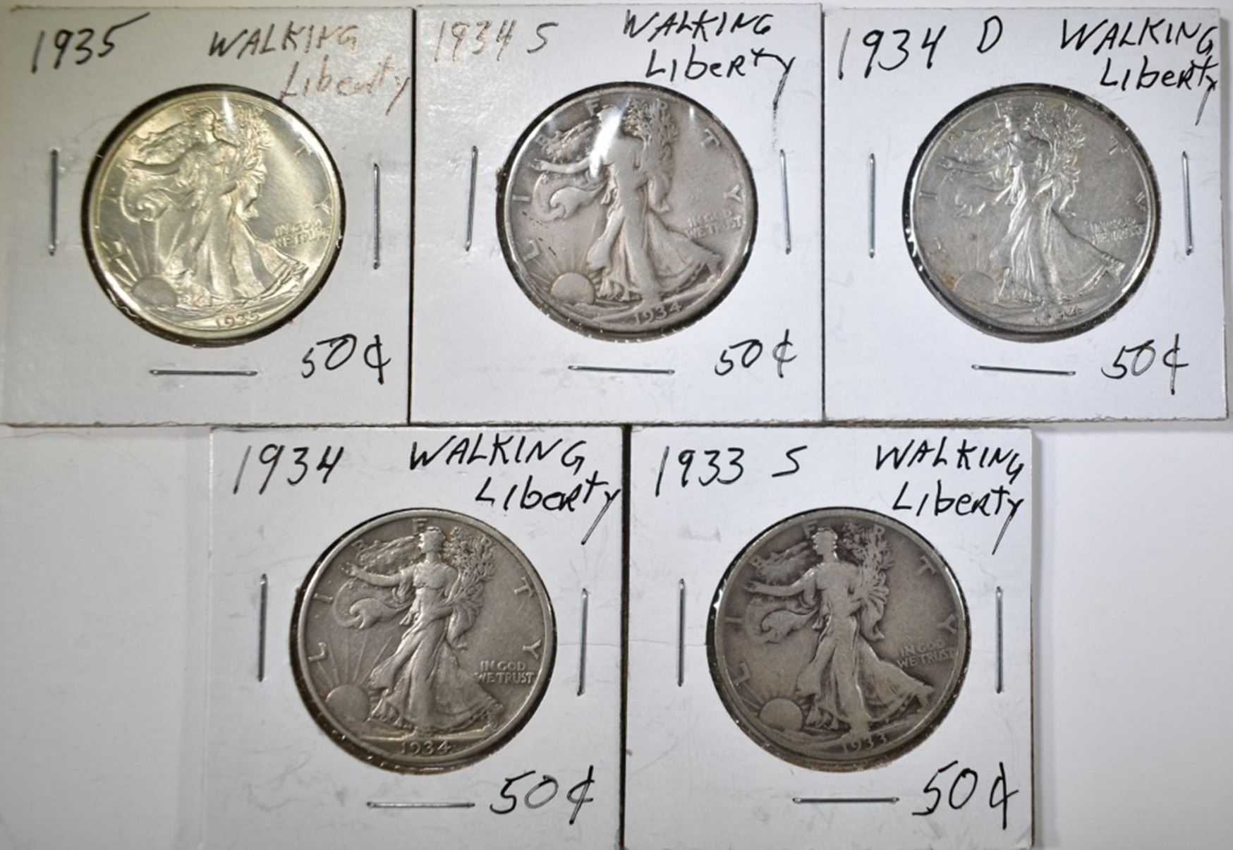 1933-S FINE, 1934 VF, 1934-D VF, 1934-S FINE & 1935 AU. ESTIMATE $90 - $110.