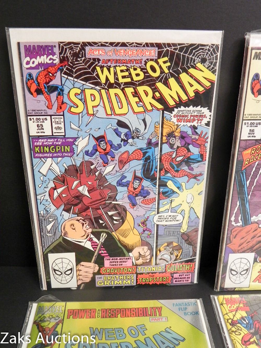 LOT OF 5 WEB OF SPIDER-MAN COMIC BOOKS. NOS 65, 56, 42, 117, 118