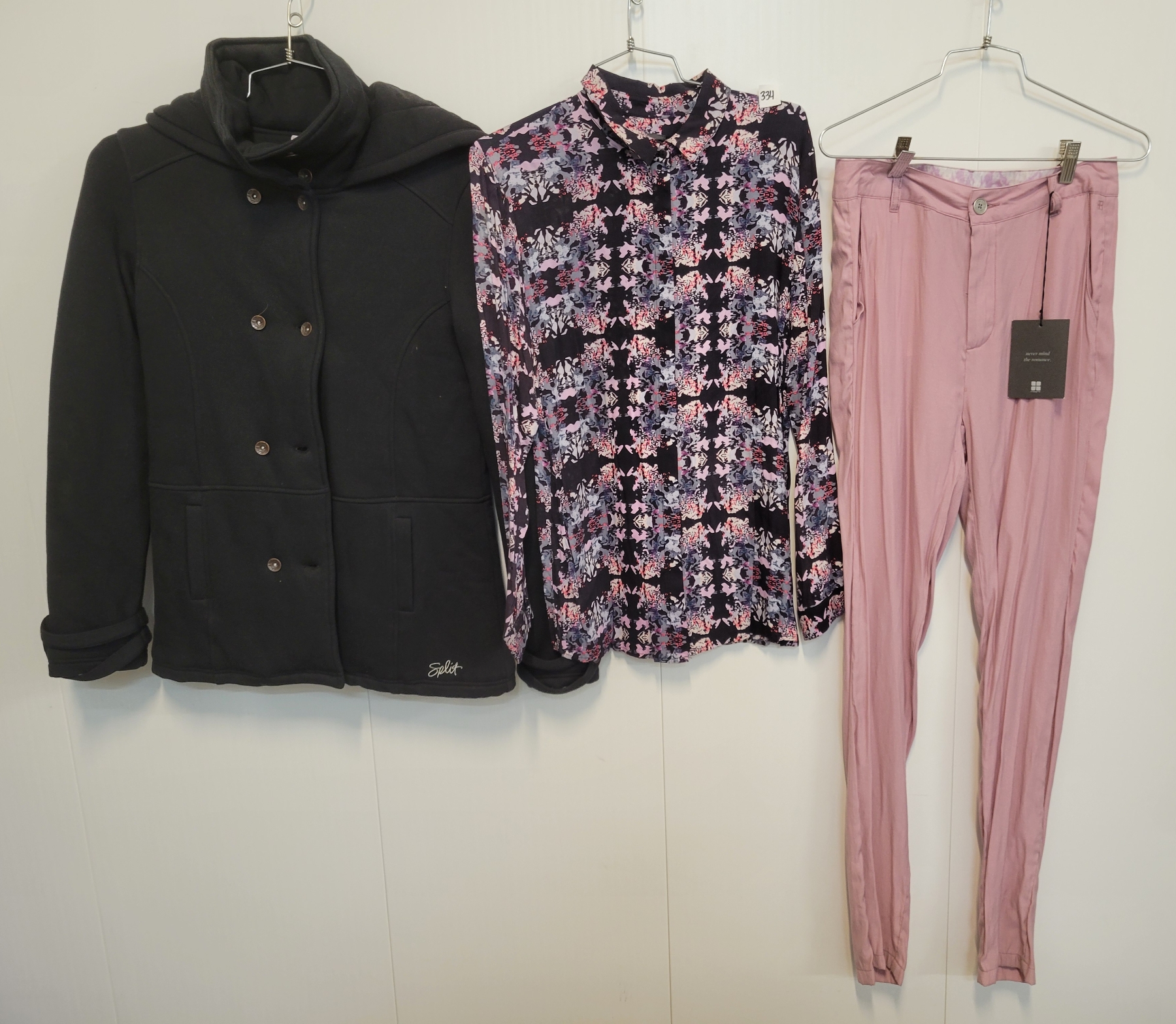 LOT OF 5 - WOMEN'S DRESS SHIRTS, PANTS, DRESS & JACKET - MFG INSIGHT, SPLIT, ALL-DAY APPAREL, ETC
