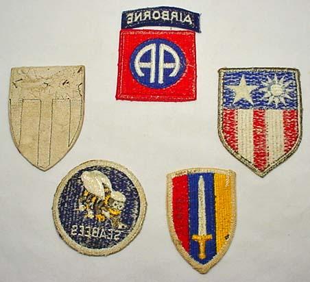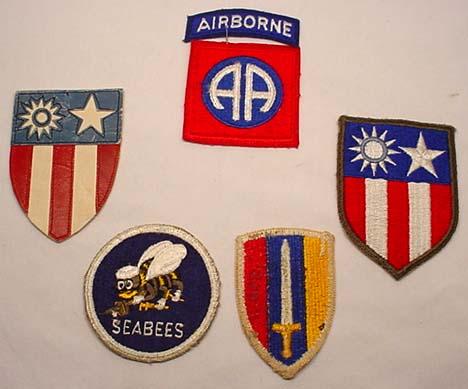 LOT OF 5 WW2 US MILITARY SHOULDER PATCHES - Incl. leather China Burma India patch.
