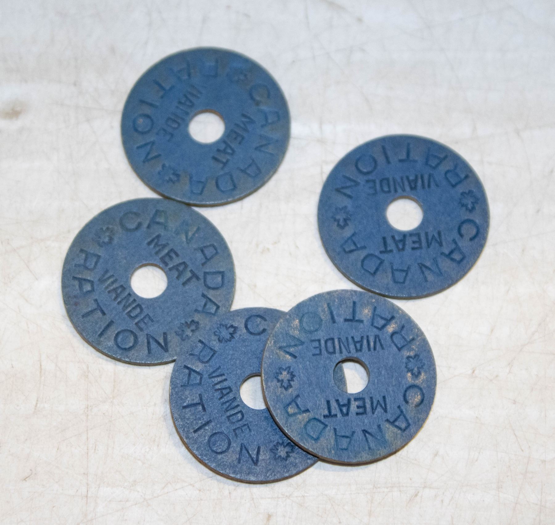 LOT OF 5 WWII CANADA MEAT RATION TOKENS