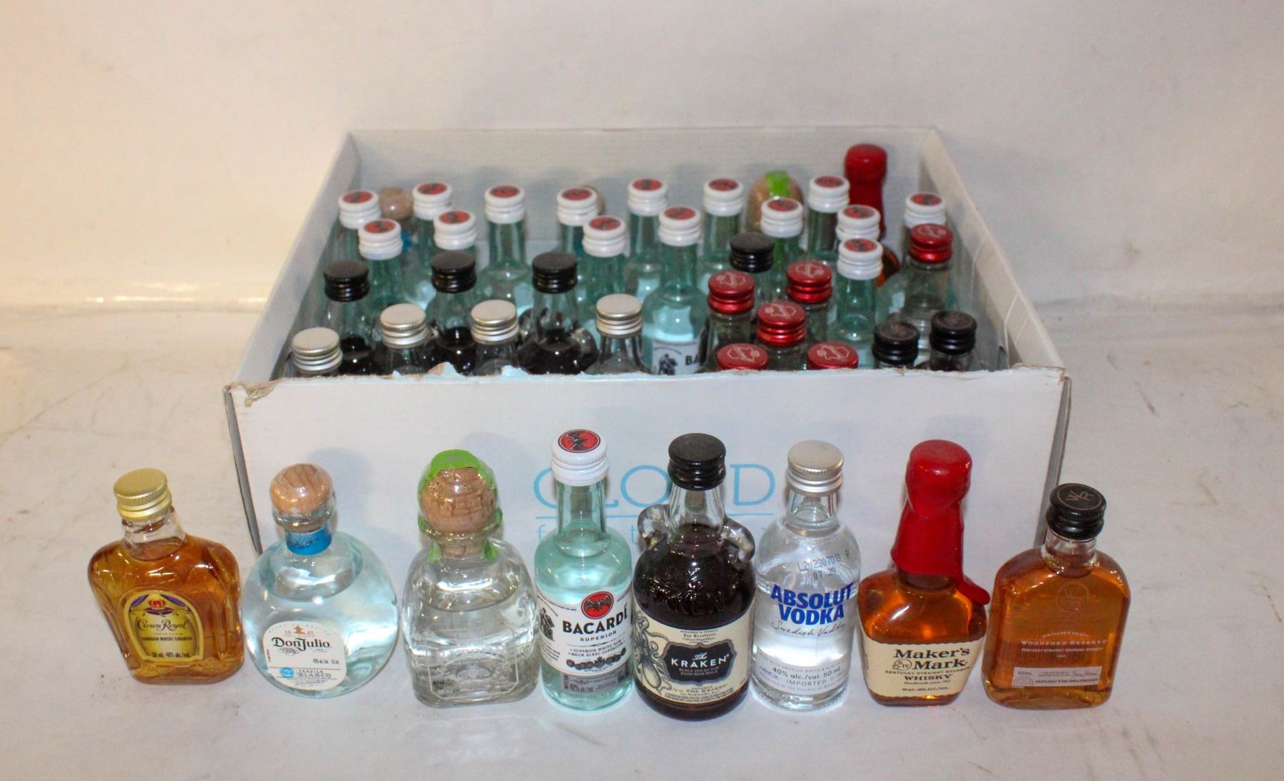 LOT OF 54 MINIATURE BOTTLES OF ALCOHOL 40-47%