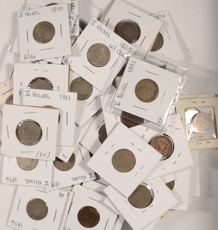 LOT OF (59) LIBERTY NICKELS, VARIOUS DATES & GRADES