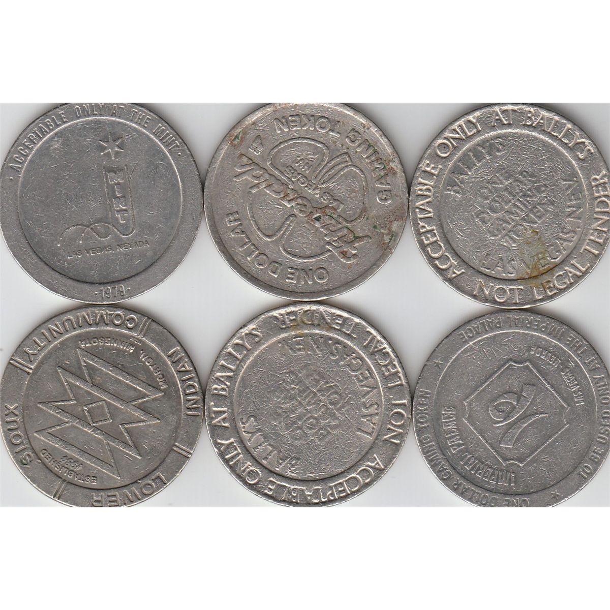 LOT OF 6 $1 CASINO CHIPS BALLYS MORE