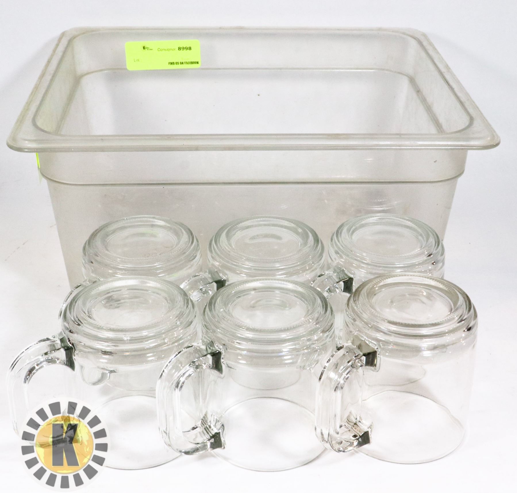 LOT OF 6 12 OZ GLASS COFFEE MUGS