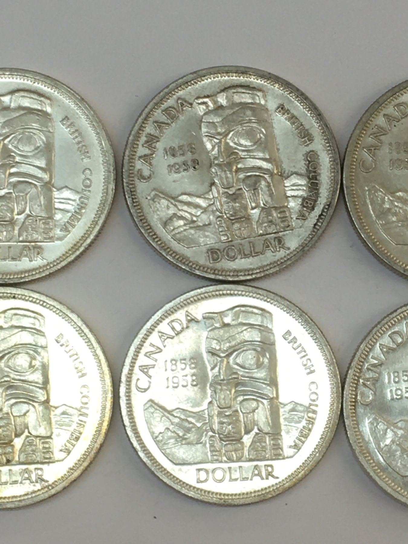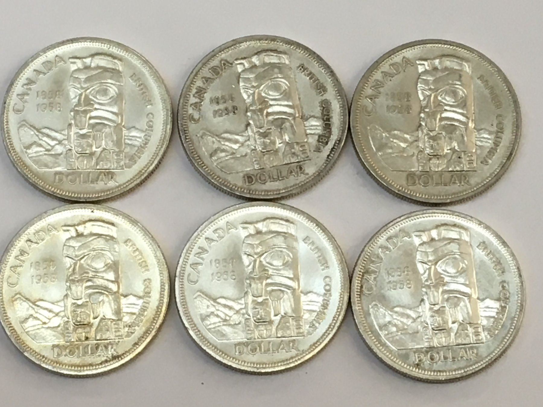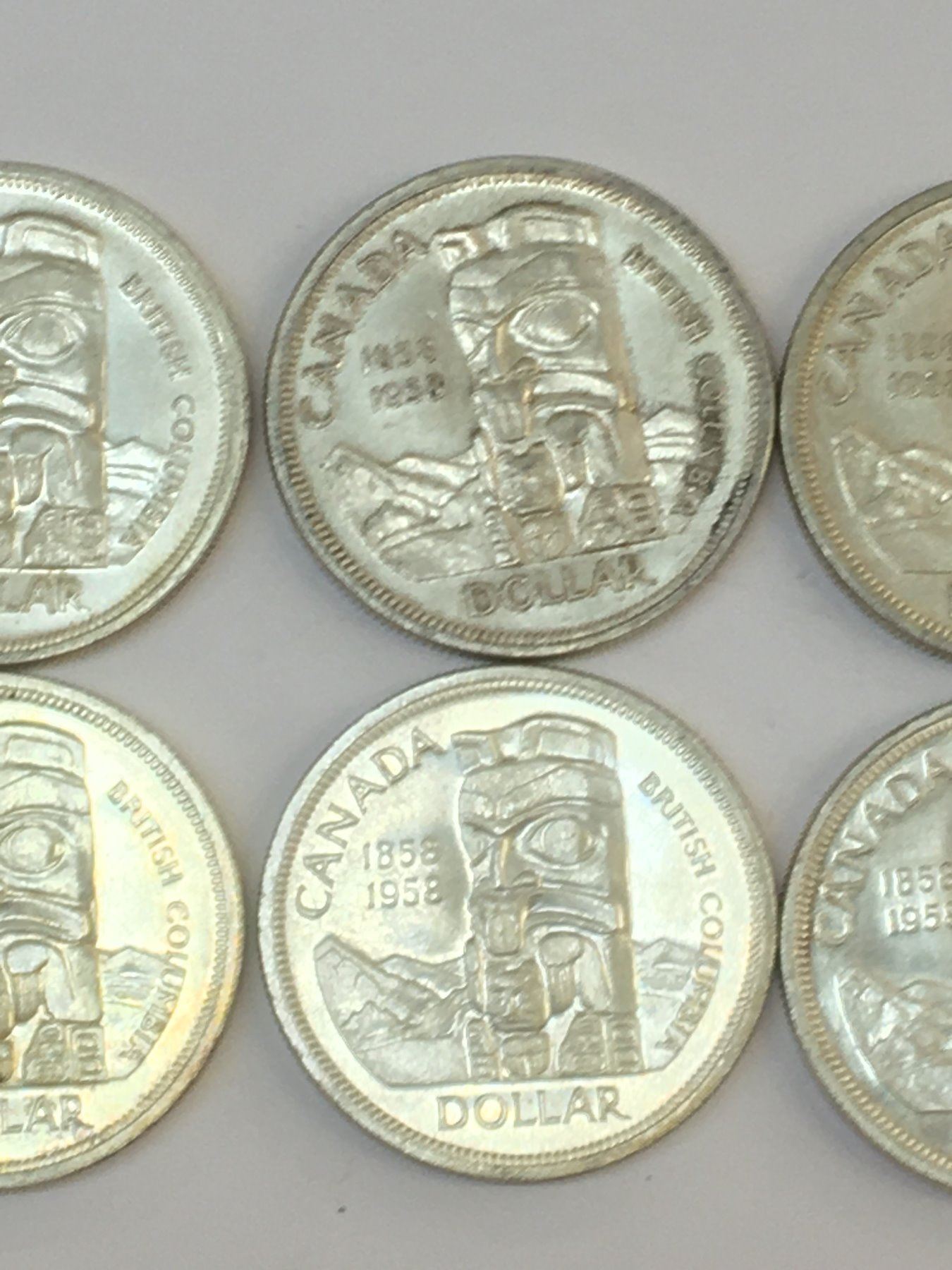 LOT OF 6 1958 BRITISH COLUMBIA CANADA SILVER DOLLARS