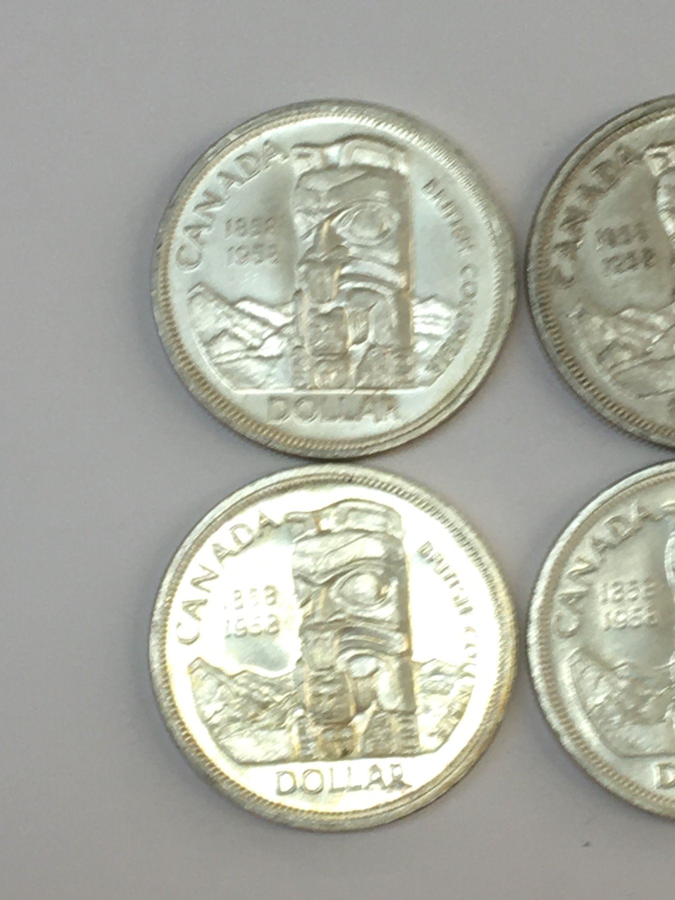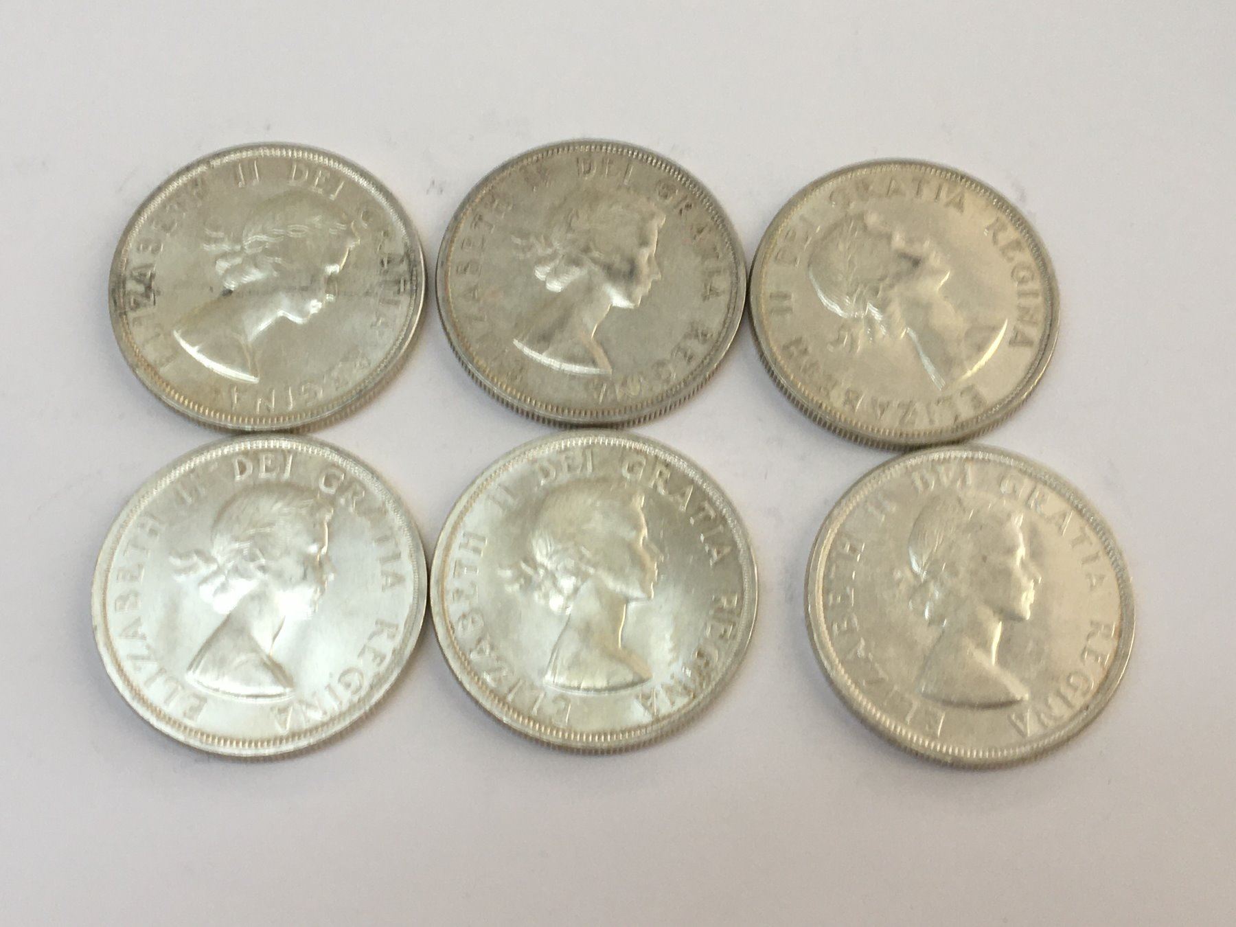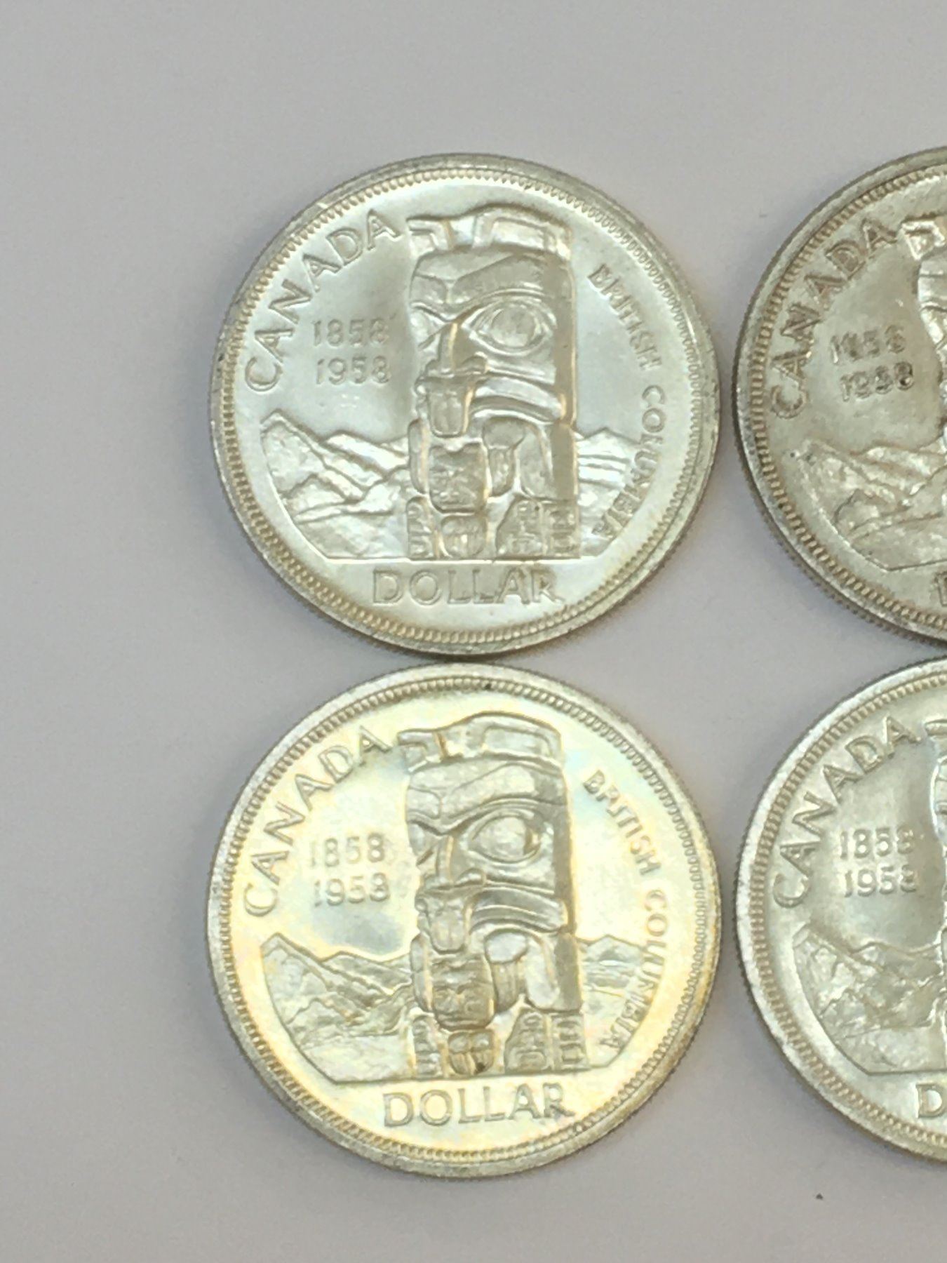 LOT OF 6 1958 BRITISH COLUMBIA CANADA SILVER DOLLARS